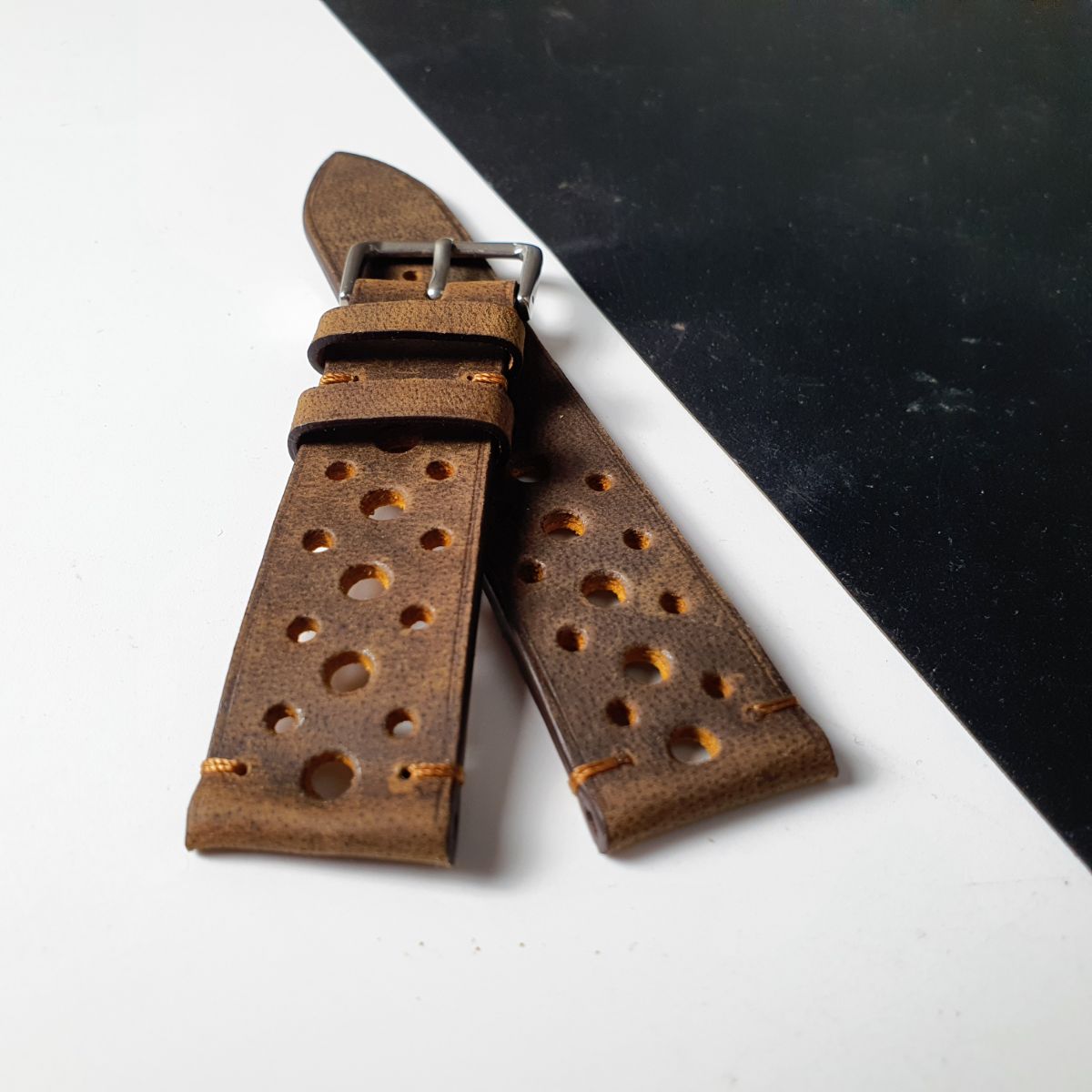 Dây đồng hồ handmade da bò thật, da thảo mộc Pueblo không chỉ viền size 18-19-20-21-22mm