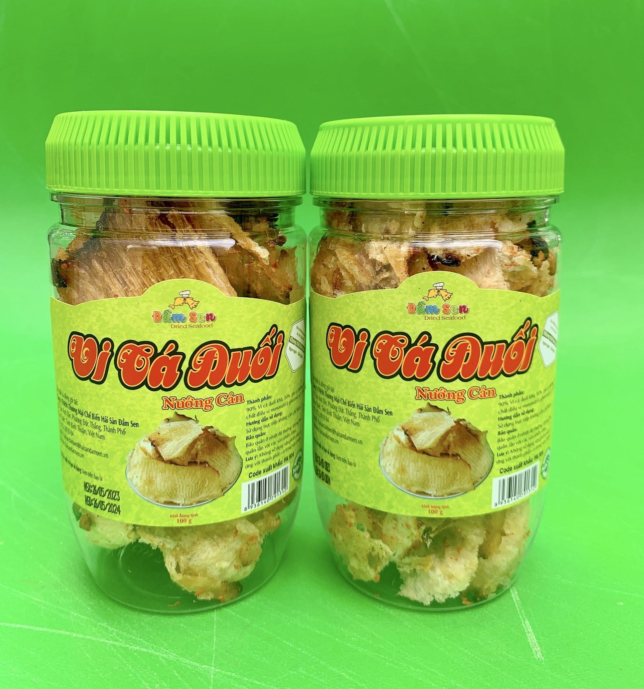 Thành phần: 90% vi cá đuối khô, 10% gia vị (đường, muối, ớt, chất điều vị mononatri L-glutamat 621, tiêu) Hạn sử dụng: 12 tháng kể từ ngày sản xuất Hướng dẫn sử dụng: Sử