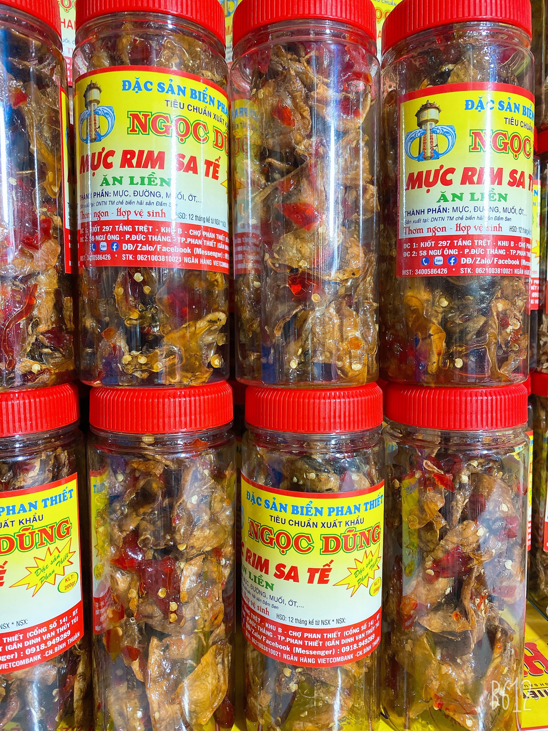Mực rim sa tế ( ăn liền ) hộp 200 gram là sản phẩm trải nghiệm được chế biến từ mực ống hay mực lá còn tươi xanh tại Cảng cá Phan Thiết tỉnh Bình Thuận là món ăn ngon của Shop Đặc Sản Biển Phan Thiết NGỌC DŨNG.