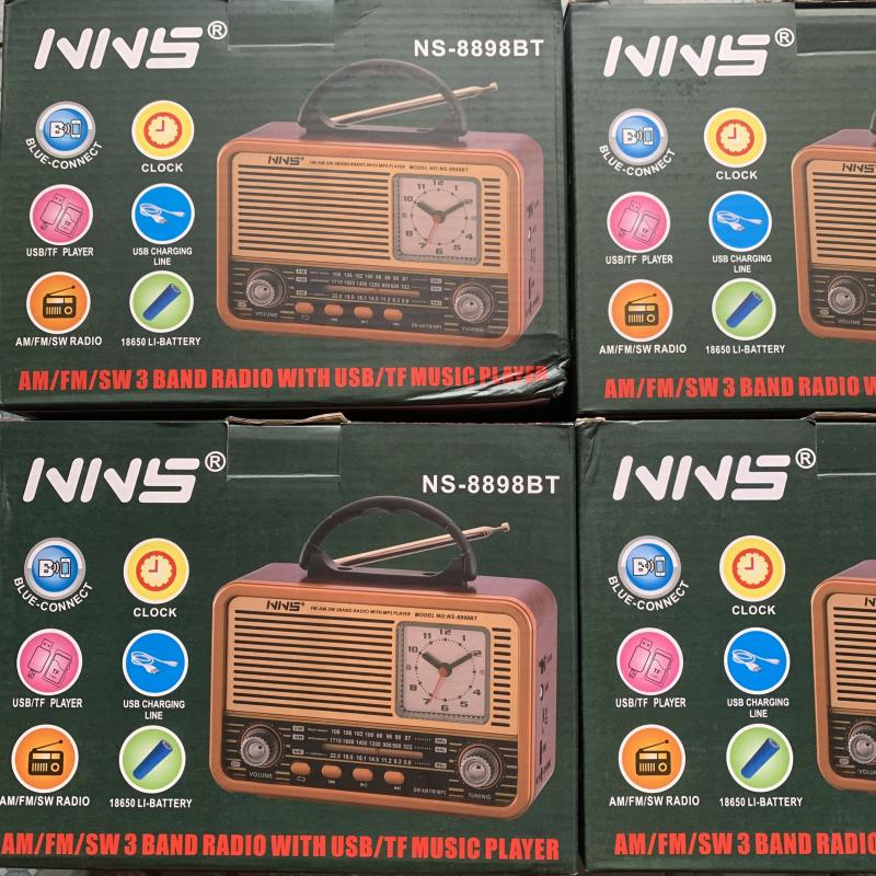 Đài Fm Radio Bluetooth NS8898BT Có Đồng Hồ Cổ Điển Công Nghệ Nhật | Giá 290k - H2pro 0898259888