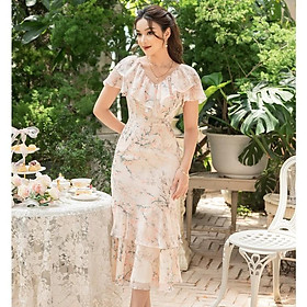 "Đầm ôm xếp tầng Emspo Milestone, cổ V viền bèo DS4111