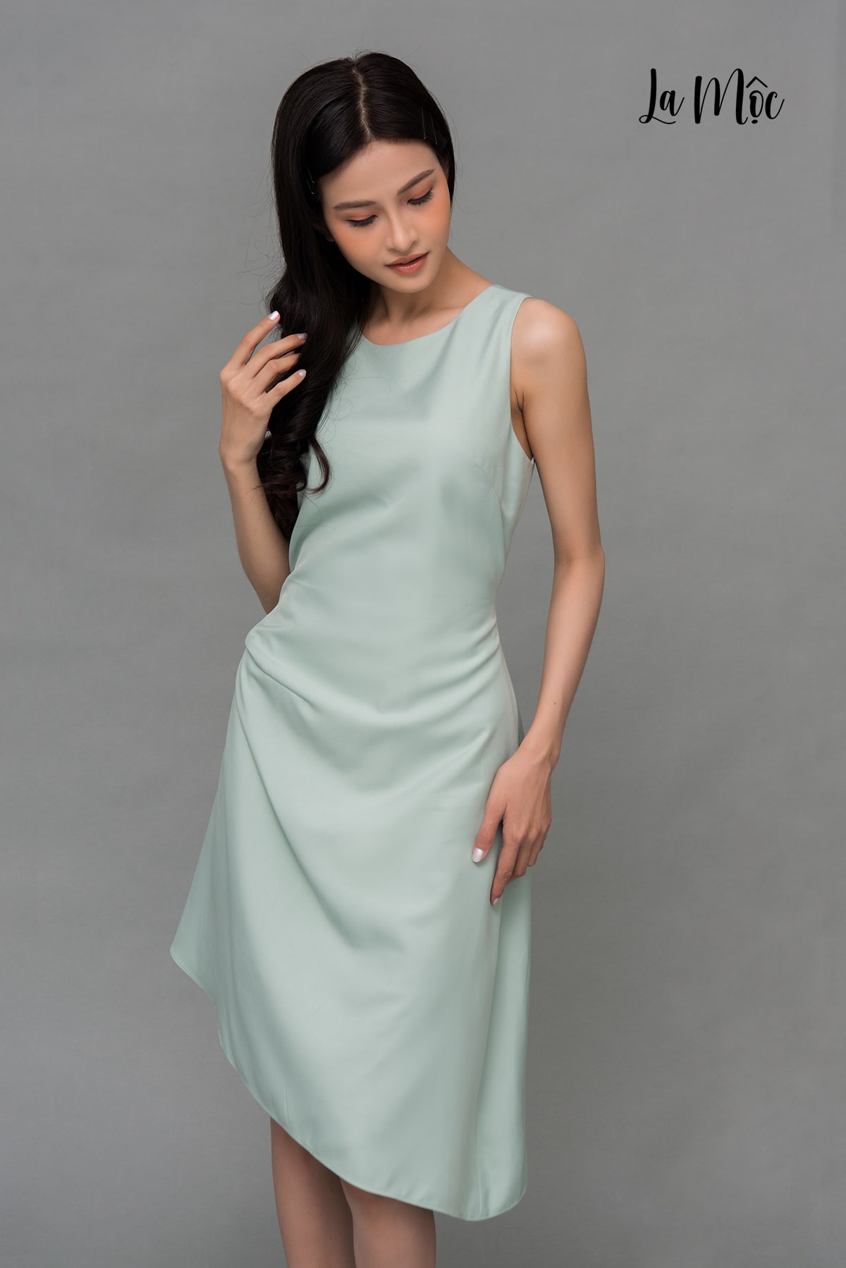 Đầm xanh cổ tròn La Mộc chất liệu lụa Korea là mẫu thiết kế dành riêng cho những cô nàng ưa thích sự sành điệu. Thiết kế chú trọng từng đường may. Phong cách trẻ