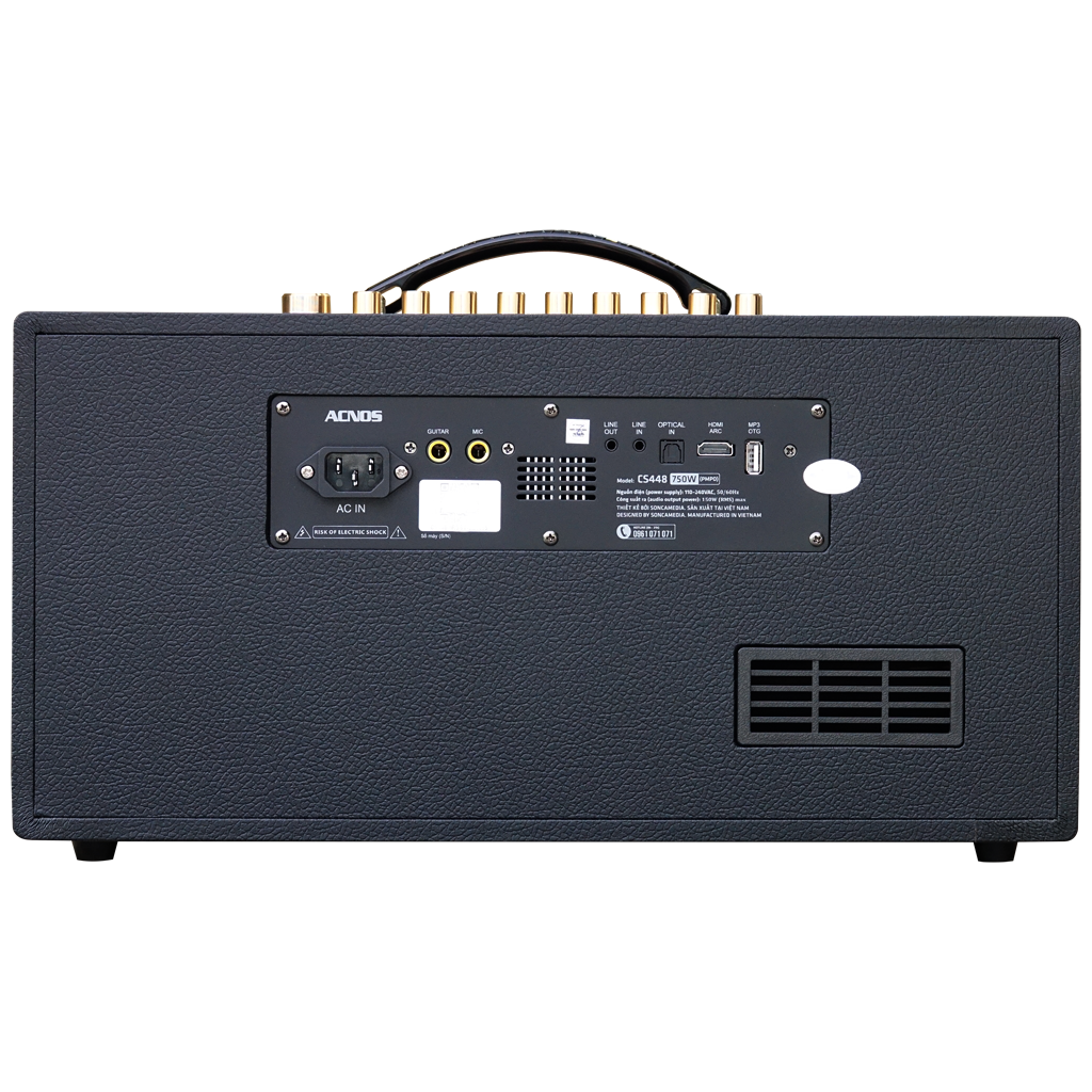 Loa karaoke xách tay ACNOS CS448 là một thiết bị âm thanh đa năng để hát karaoke, nghe nhạc, tích hợp vang số và soundcard. Thiết bị có thể hỗ trợ bạn hát live, karaoke, ghi âm, podcast, học online hay hội nghị trực tuyến một cách dễ dàng và chất lượng. ACNOS CS448 có các cổng kết nối sau: