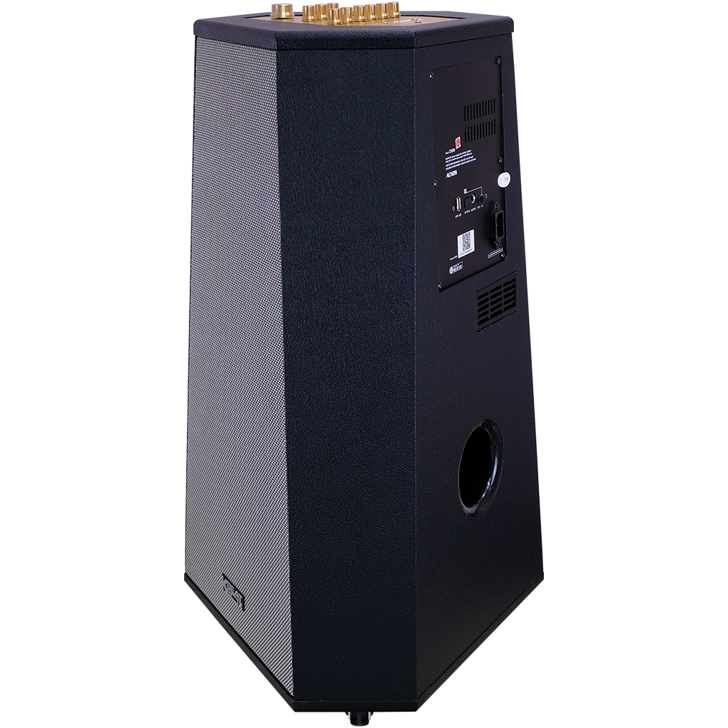 Công suất RMS 150W cho âm trầm mạnh mẽ, sâu lắng. Beat nhạc chất lượng cao, chọn bài trộn chung YouTube và nguồn nhạc chọn lọc qua app CloudKaraoke.