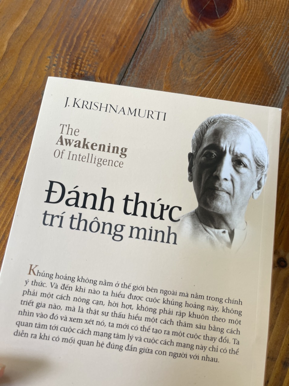 Đánh Thức Trí Thông Minh cuốn sách ghi lại những bài giảng và bài nói chuyện của Krishnamurti trên khắp thế giới, giới thiệu về tư tưởng của triết gia vĩ đại này. Trong các bài nói chuyện này, Krishnamurti bàn về rất nhiều vấn đề liên quan đến cuộc sống như nỗi sợ hãi, xung đột, bạo lực, trải nghiệm tôn giáo, trí thông minh, hiểu biết chính mình, ý thức và vô thức,… thông qua “trí thông minh” là ý niệm xuyên suốt. Ngoài các bài nói chuyện với công chúng, ông còn đối thoại với các giáo sư, các nhà tôn giáo nổi tiếng thế giới. Đây là cuốn sách không thể thiếu dành cho tất cả những ai thực sự nghiêm túc trên con đường tìm kiếm hiểu biết tâm linh thông qua những lời dạy đầy minh triết. Làm thế nào để trí não hoàn toàn tịch lặng? Có sự hòa hợp giữa thân, tâm và trí, không bất hòa, không xung đột. Làm thế nào để không có xung đột và luôn có sự hòa hợp? Bằng cách dẫn dắt cử tọa tập trung vào vấn đề chính yếu và không sa đà vào những nội dung không thiết thực.