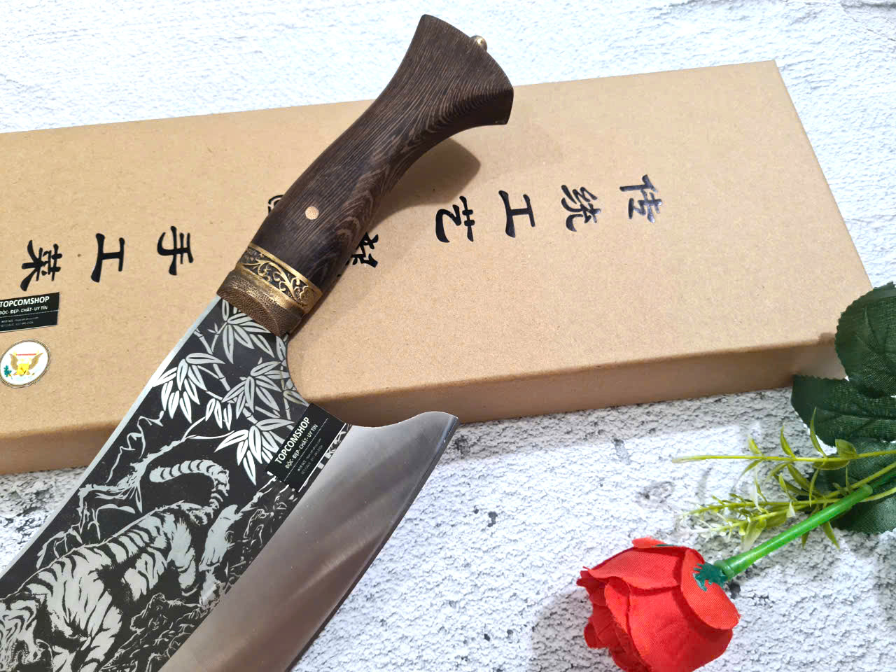Tên sản phẩm: Dao Phúc Sen Dao Chặt Xương 03 Cán Cẩm - Chất liệu: 100% thép nhíp ô tô được lựa chọn và kiểm duyệt kỹ càng. - Chất liệu cán: gỗ cẩm chỉ