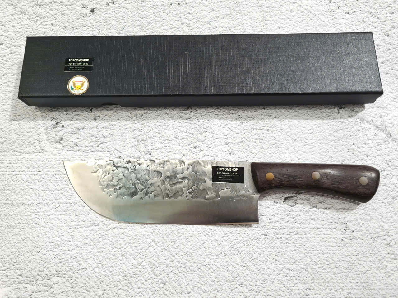 - Chức năng: thái thịt, rau củ quả - Kích thước: Lưỡi: 17cm, cán: 12cm, rộng: 5cm, dầy: 1ly, trọng lượng: 200g - Cán : Gỗ cẩm chỉ, Chốt, Khâu ĐỒNG ĐỎ , keo liên