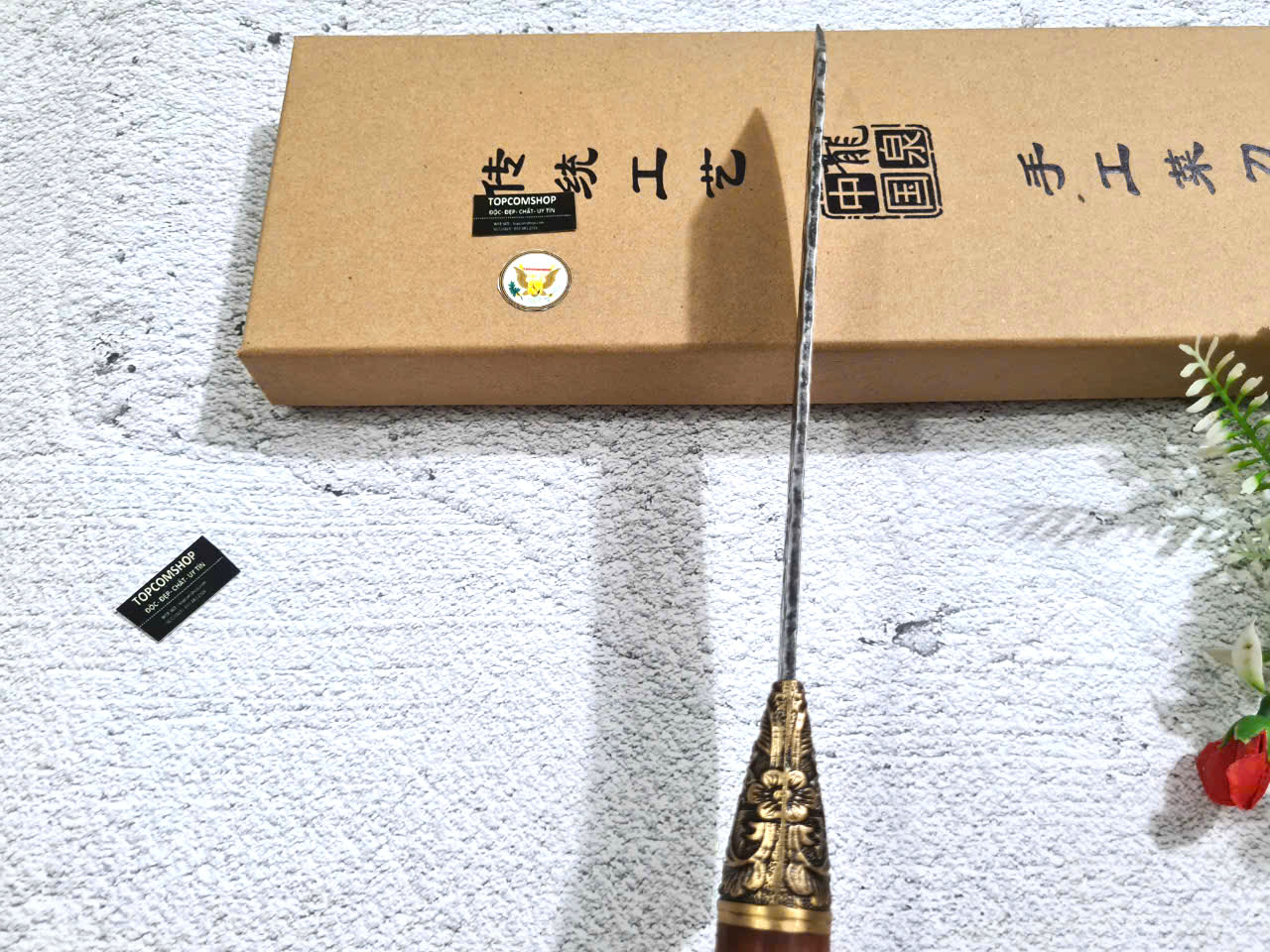 Chất liệu tay cầm: gỗ cẩm lai, khâu và chuôi cuối dao bằng đồng thau