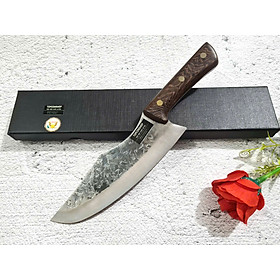 -THÔNG TIN SẢN PHẨM: Chiều dài tổng thể: 29.5cm, Chiều dài lưỡi: 19.5cm ,Chiều rộng lưỡi: 5cm Độ dày: 2.5MM, CHẤT liệu lưỡi: 5Cr15MOV (thép 5 crom 15 molypden vanadi) Chất liệu CÁN: gỗ Cánh gà NẶNG : 2.5 lạng Mặt D dập chìm hoa văn rất đẹp