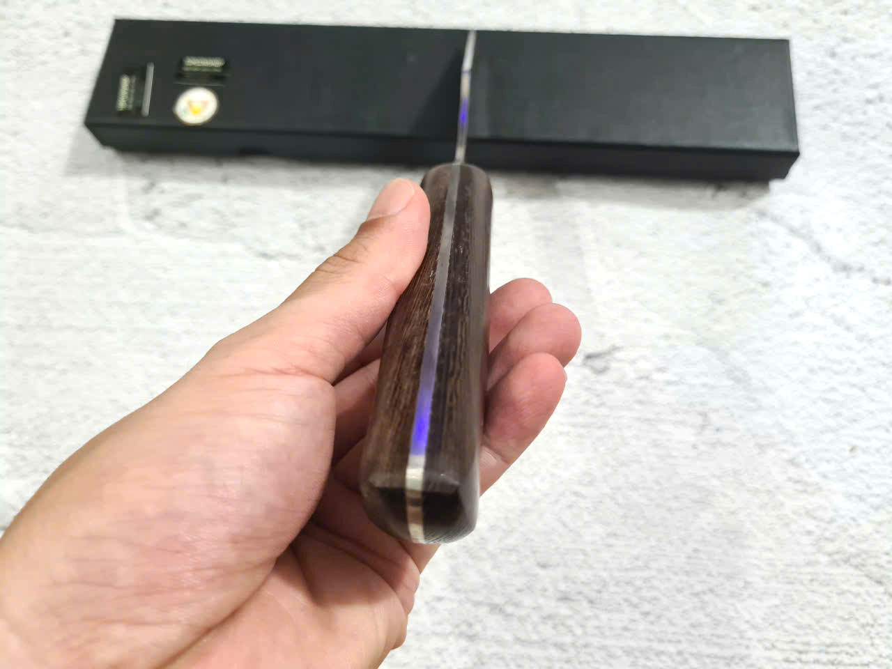 Dao Phúc Sen Dao Bầu 22 Cán Ốp G10D - Kích thước: lưỡi: 20-22cm, cán: 13cm, rộng: 7,5cm, dầy: 1,5ly, trọng lượng: 300g - Chức năng: sử dụng chuyên thái lọc thịt ,cá, rau củ,