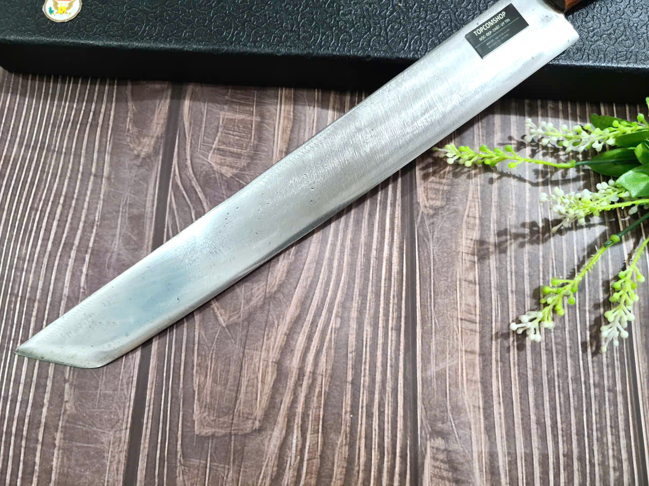 Lưỡi dao thuôn dài, sắc nhọn, nặng đằm tay.