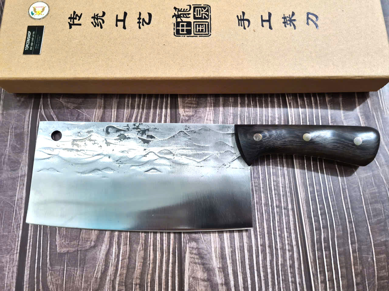THÔNG TIN SẢN PHẨM ều dài TỔNG: 32cm Chiều dài lưỡi: 20cm Chiều rộng lưỡi: 12cm, Độ dày lưỡi: 2.5mm Trọng lượng: 4.5 lạng chất liệu lưỡi : 5Cr15MOV (thép 5 crom 15 molypden vanadi) Chất liệu tay cầm: gỗ cánh gà
