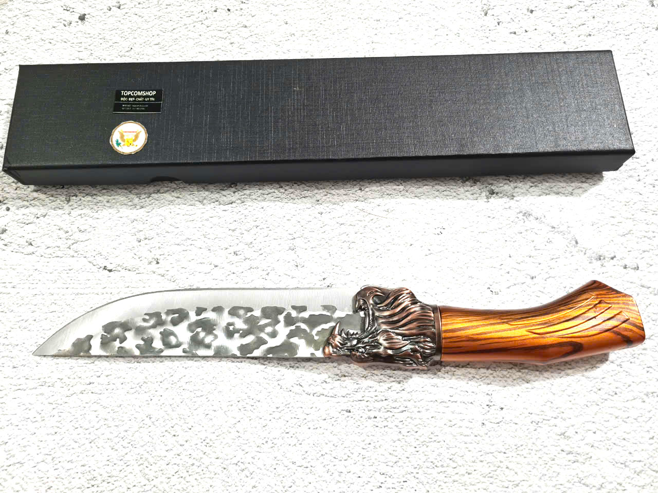 • Chất liệu: Thép Nhật 420J2, độ cứng 53HRC – siêu bền, chống gỉ • Lưỡi dao: Dày 2.5mm, sắc bén, hoàn thiện bằng đá mài nước • Tay cầm: Gỗ Pakka sang trọng, chống