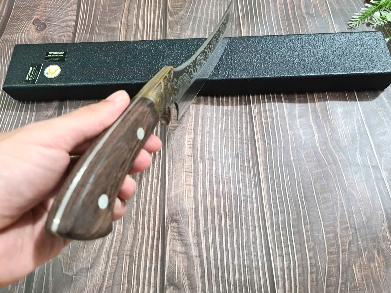 DAO PHÚC SEN - Dao Thái 22 cán mun khâu đồng đỏ - Chức năng: chuyên thái thịt và rau củ - Kích thước: Lưỡi: 22cm, cán: 12cm, rộng: 7,5cm, dầy: 1ly, trọng lượng: 280g