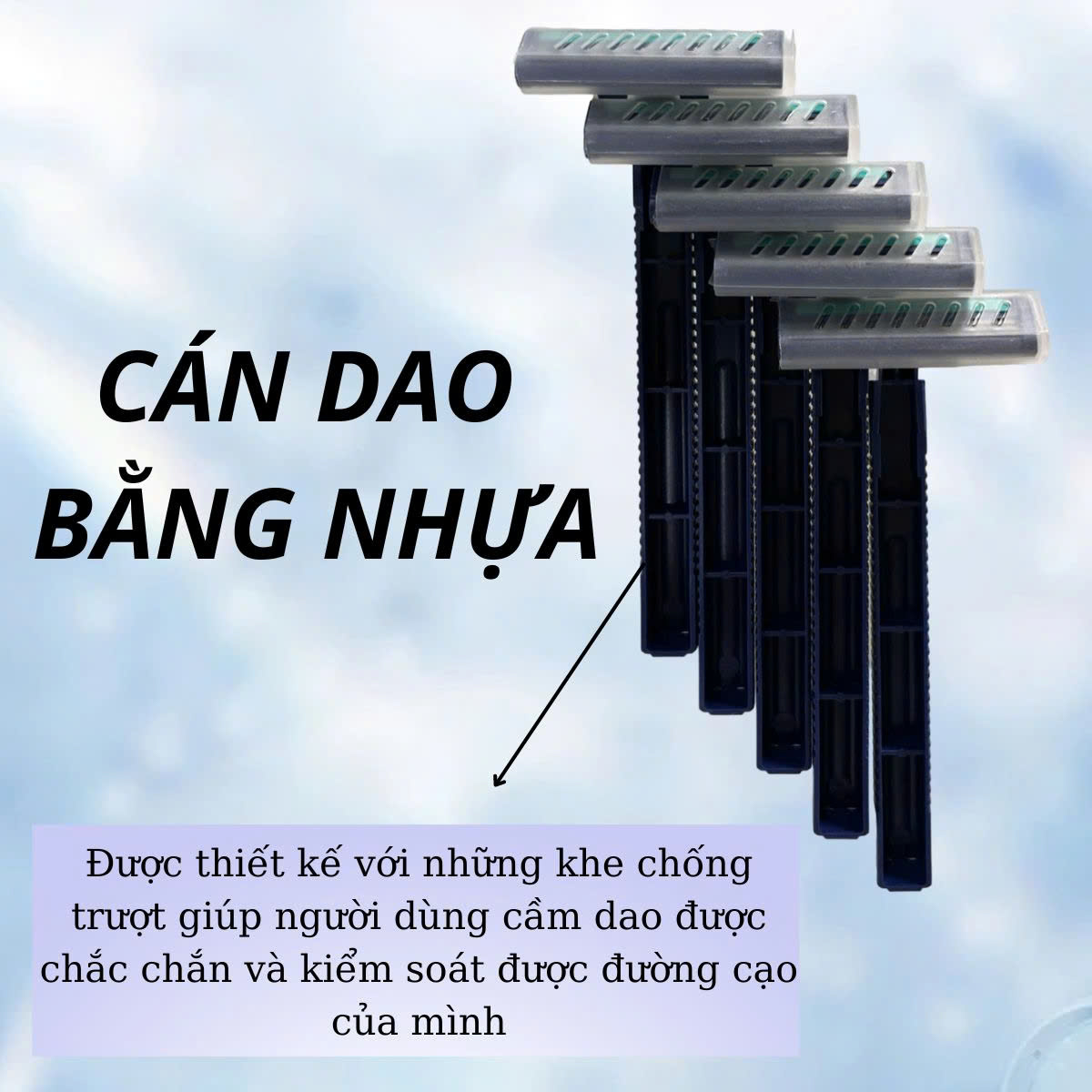 - Mỗi dao cạo đều có một nắp nhựa đảm bảo vệ sinh và an toàn khi chưa sử dụng .