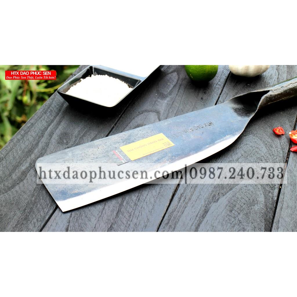Dao Phúc Sen - Dao Chặt Xương Mới - Chức năng: Chặt xương ống, chân giò, trâu bò - Kích thước: Lưỡi: 22cm, cán: 12cm, rộng: 11cm, dầy: 4ly, trọng lượng: 800g + 100% nguyên