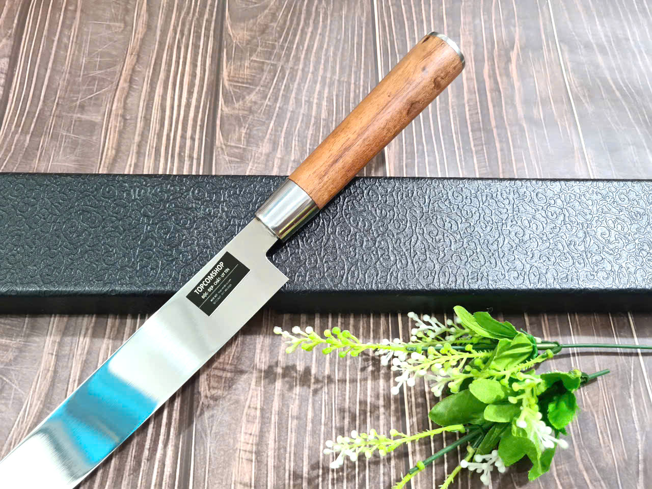 Tổng chiều dài của sản phẩm là 46CM , chiều rộng dao là 3.5CM. độ dày lưỡi 4.5mm