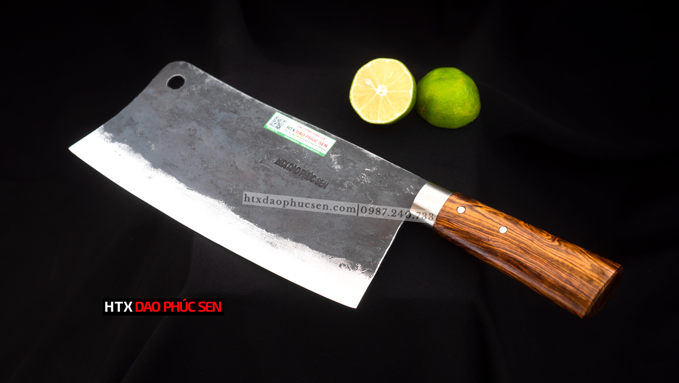 Dao Phúc Sen - Dao chặt xương 5ly - Chất liệu: 100% thép nhíp ô tô được lựa chọn và kiểm duyệt kỹ càng. - Chất liệu cán: gỗ cẩm chỉ núi - Kích thước: