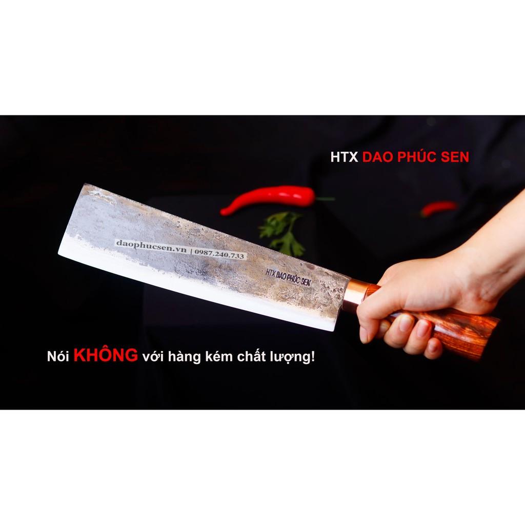 Dao Phúc Sen - Dao chặt xương 5ly - Chất liệu: 100% thép nhíp ô tô được lựa chọn và kiểm duyệt kỹ càng. - Chất liệu cán: gỗ cẩm chỉ núi - Kích thước: