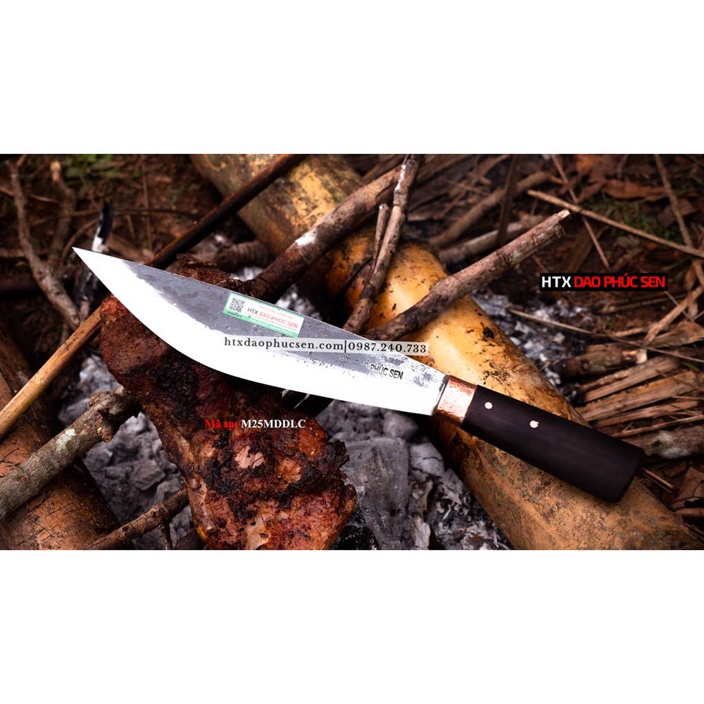Dao Phúc Sen Đi Rừng 25 - M25MDDLC là mẫu dao mèo sử dụng thái thịt, chặt cây, vót nhọn, chẻ củi, cắt dâ đi cắm trại. - Kích thước: Lưỡix25cm, cánx12 cm, rộngx5 cm,