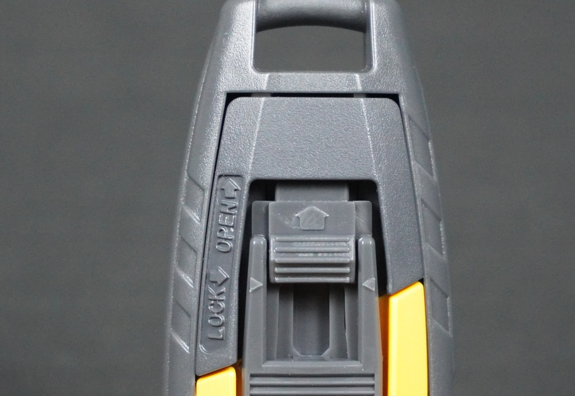Ngoài ra, dao rọc giấy an toàn còn có cơ chế khóa trượt giúp không kéo lưỡi dao ra được.