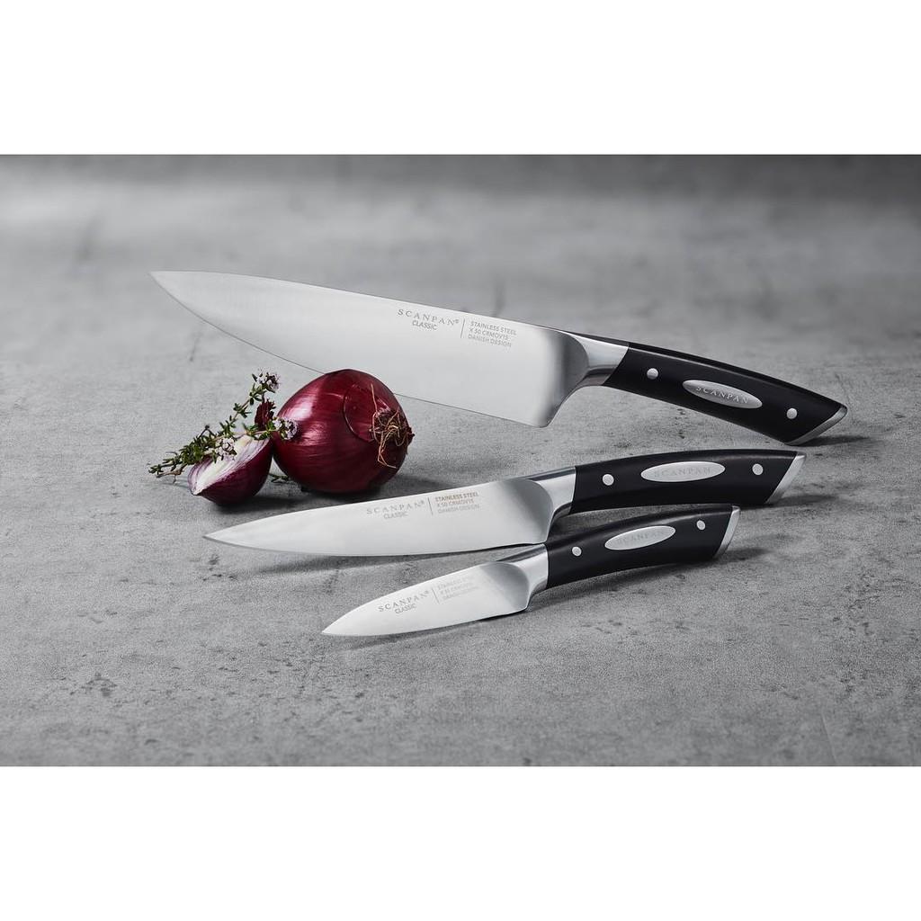 Đặc điểm nổi bật của các dao Scanpan là chất lượng, độ bền và thiết kế sắc nét trong từng chi tiết, là sự lựa chọn tuyệt với tất cả các đầu bếp chuyên nghiệp cho dù cắt, thái, băm, chặt....