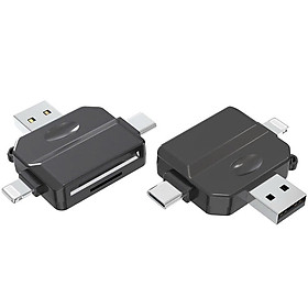 Thông số sản phẩm : Chất liệu : Nhựa ABS Kích thước : 65x65x65 mm Cổng kết nối : Type C, USB, L 8 pin Đầu đọc thẻ : SD ,