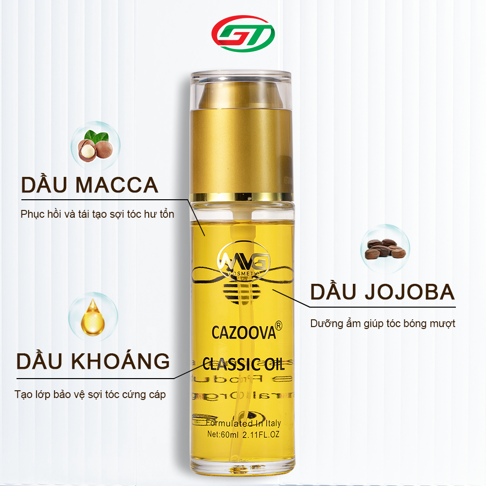 TINH DẦU DƯỠNG TÓC CAZOOVA CLASSIC OIL 60ML - Formulate: ITALY - Thương hiệu: Cazoova - Dung tích: 60ml THÔNG TIN CHI TIẾT: *** Tinh dầu dưỡng tóc Cazoova Classic oil là sản phẩm giúp
