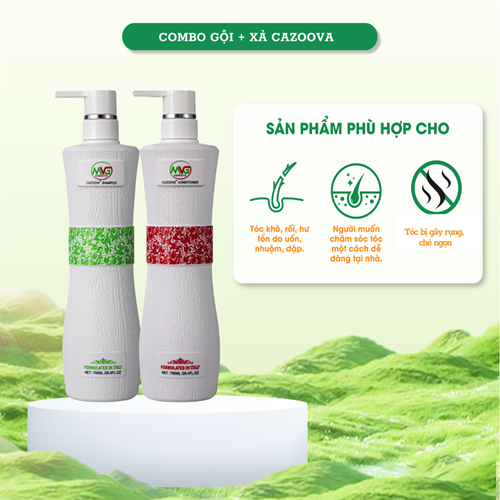 - Dầu cặp Cazoova là bộ sản phẩm sản xuất với công thức đặc biệt từ ITALY đã được hàng nghìn nhà tạo mẫu tóc tin dùng. Bộ sản phẩm chuyên dùng trong các salon tóc chuyên nghiệp hỗ trợ vượt trội quy trình làm sạch và phục hồi tóc trong các salon trên toàn quốc. Dầu gội với công thức x2 lượng bọt hoàn hảo cho quy trình làm sạch tại nhà như gội 2 lần tại salon. Dầu xả thành phần giàu colagen dưỡng ẩm cho sợi tóc luôn mềm mượt và chắc khoẻ. Hương thơm ngọt ngào sang trọng mang đến cảm giác thư giãn và thoải mái sau khi sử dụng, lưu hương trên tóc lên đến 12h. THÀNH PHẦN HOẠT CHẤT: