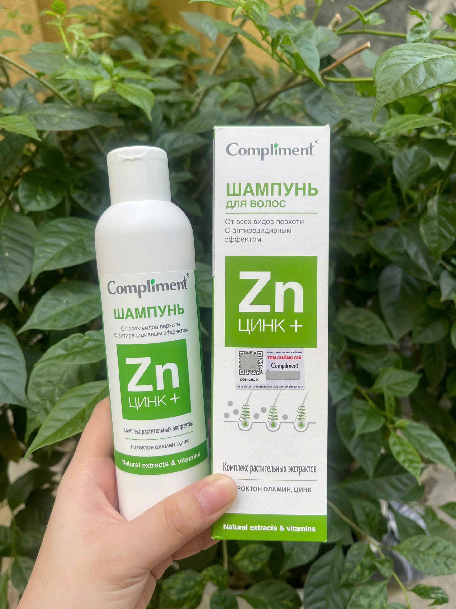 Dầu gội Zn Compliment ngăn gàu, giảm ngứa vẩy nến da đầu Dầu gội dưỡng ẩm Compliment Zn+ có khả năng giảm gàu cho tóc bất kỳ. Dầu gội có chứa ketoconazole và kẽm pyrithione