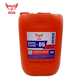 Nhớt động cơ Singwing D5 Turbo++ 15W40 25L là loại dầu nhớt động cơ diesel đa cấp chất lượng siêu hạng (SHPD) dùng bôi trơn động cơ diesel, động cơ xăng có turbo tăng áp thường xuyên hoạt động trong điều kiện vận hành khắc nghiệt.