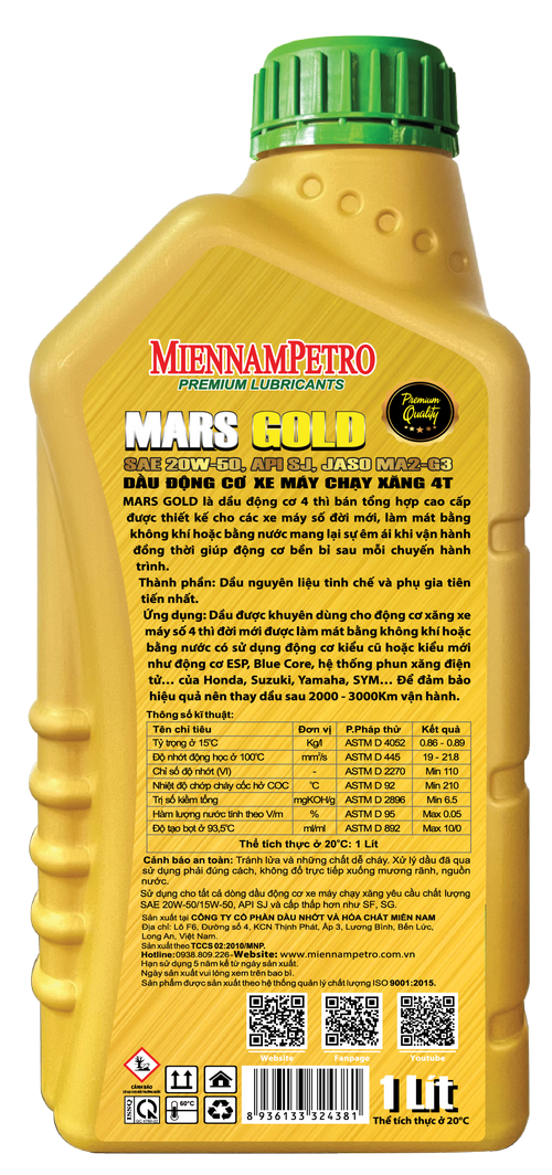 Dầu Nhớt MiennamPetro Mars Gold Motor Oil 4T 20W-50 API SJ JASO MA2 1L Bảo Vệ Động Cơ Xe Máy 4 Thì Cao CấpDầu Nhớt MiennamPetro Mars Gold Motor Oil 4T 20W-50 API SJ JASO MA2 1L Bảo Vệ Động Cơ Xe Máy 4 Thì Cao CấpDầu Nhớt MiennamPetro Mars Gold Motor Oil 4T 20W-50 API SJ JASO MA2 1L Bảo Vệ Động Cơ Xe Máy 4 Thì Cao Cấp