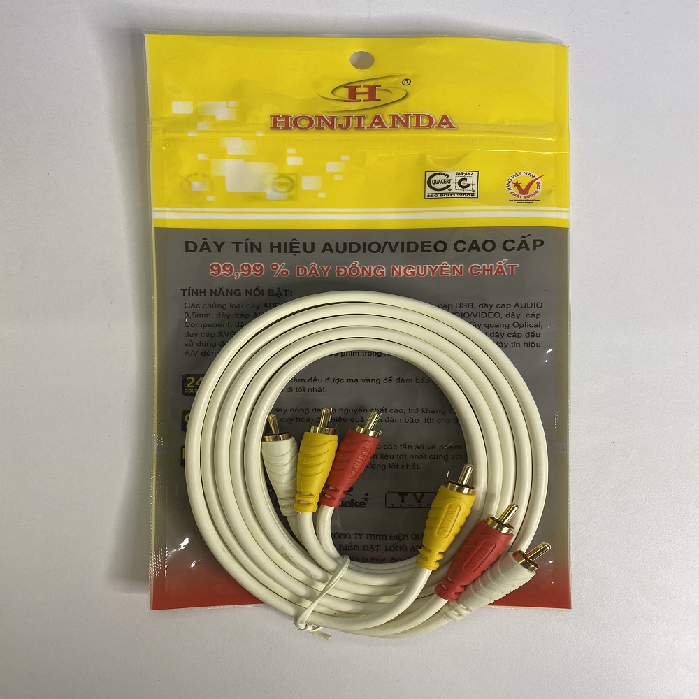 - Dây bọc nhựa dày, to, chắc cho tín hiệu âm thanh tốt, truyền tín hiệu đi xa không bị nhiễu Cáp AV 6 đầu hoa sen dài 1,8 MÉT cao cấp (ĐỒNG NGUYÊN CHẤT 99,9%) LOẠI CÁP 6 ĐẦU HOA SEN AV (RCA) CHIỀU DÀI CÁP 1,8 MÉT THƯƠNG HIỆU HJD ĐẶC ĐIỂM NỔI BẬT