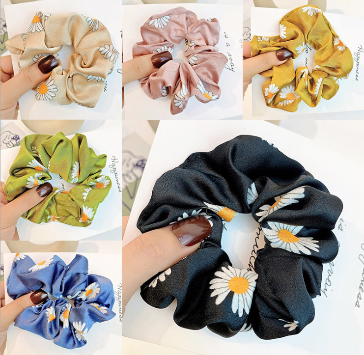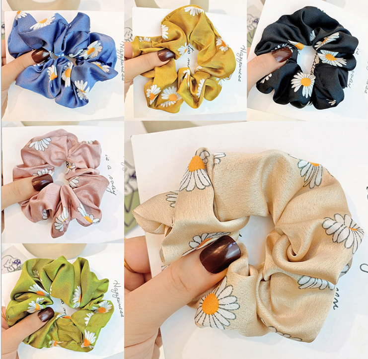✨Dây buộc tóc Scrunchies lụa in hoa cúc HD98