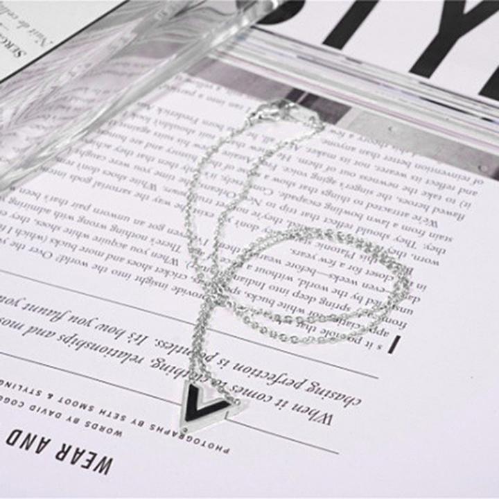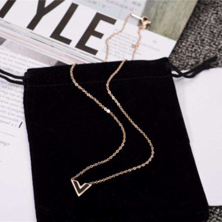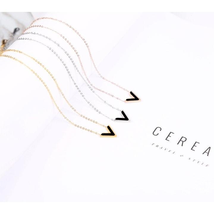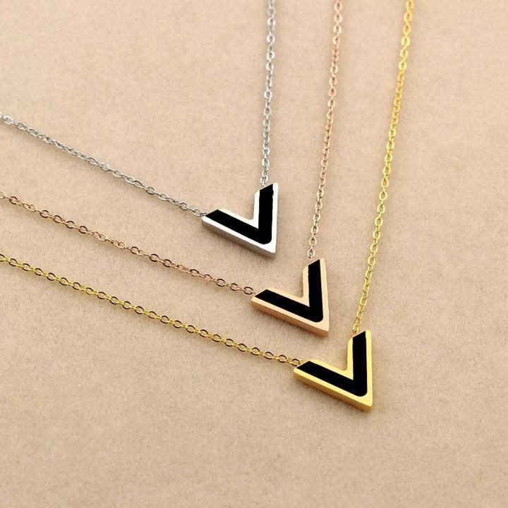 Mua tại TiktokDây chuyền nữ titan thời trang cao cấp mặt chữ V nền đen thép không gỉ trangsucpt có 3 màu sắc DCNUT74