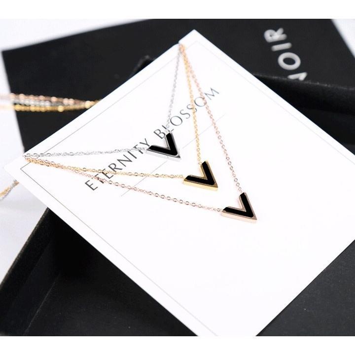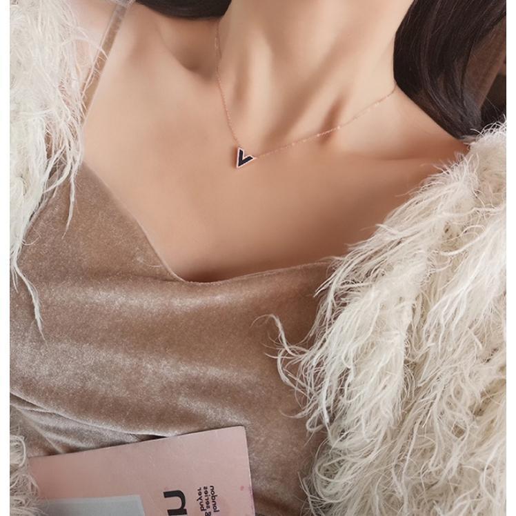 ✨Dây chuyền nữ titan thời trang cao cấp mặt chữ V nền đen thép không gỉ trangsucpt 3 màu sắc DCNUT74