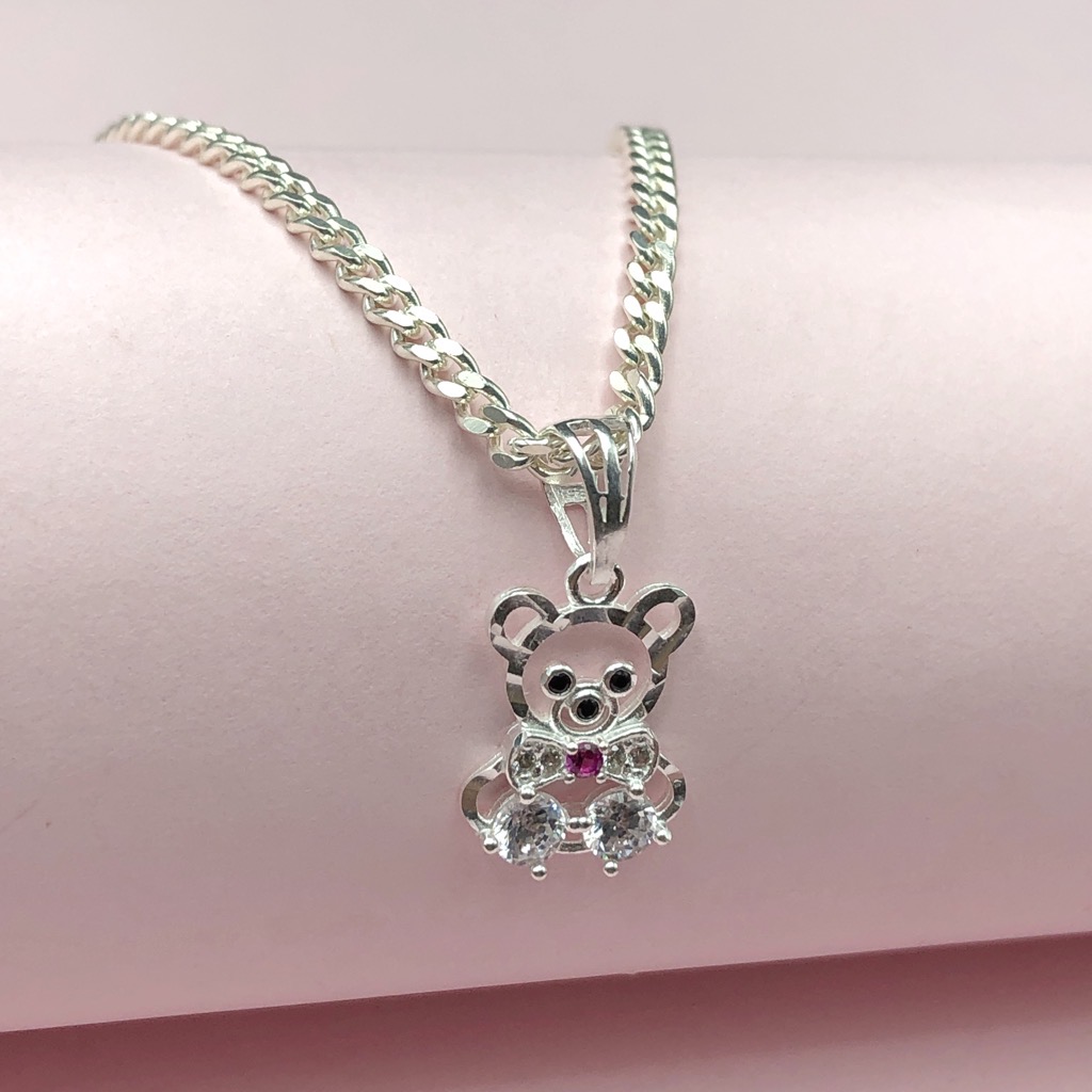Dây Chuyền Trẻ Em Bạc 925 Hình Mặt Gấu Dễ Thương Chính Hãng Bạc Hiểu Minh DTE063