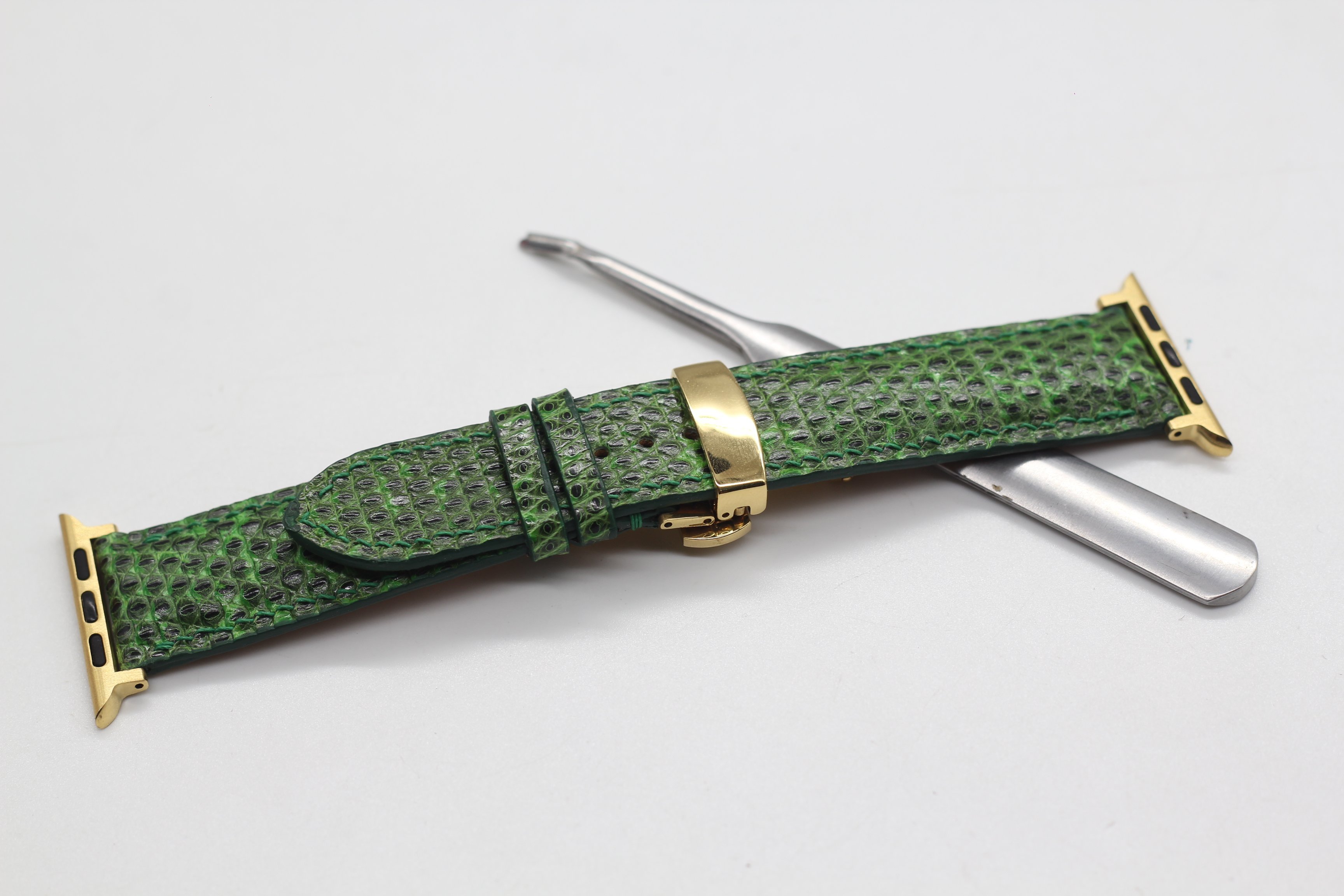 Mua tại TiktokDây da Apple Watch Kỳ Đà handmade cao cấp nhiều màu c size 20mm, 22mm - DÂY ĐƯỢC LÀM HOÀN TOÀN THỦ CÔNG TỈ MỈ - KỲ ĐÀ THẬT 100%, NÓI KHÔNG VỚI GIẢ DA VÀ DA DẬP VÂN -DA LÓT CAO CẤP CHỐNG THẤM NƯỚC VÀ MỒ HÔI - KHÓA VÀ ADAPTER CAO CẤP KHÔNG RỈ, KHÔNG BAY MÀU GỒM 2 MÀU KHÓA :VÀNG, BẠC CHI TIẾT SẢN PHẨM: - Chiều dài:120mm x 75mm - Màu sắc: xanh Lá, xanh Navy, Trắng