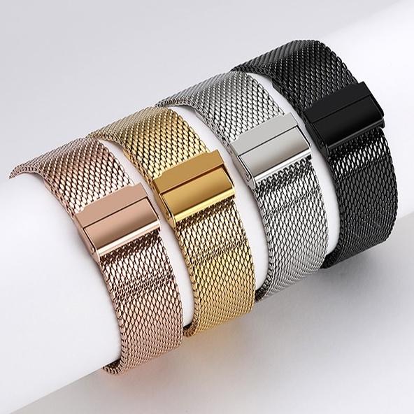 Dây đồng hồ thép không gỉ dây Mesh cao cấp chống gỉ mạnh mẽ, được mạ lớp tĩnh điện kim loại chống Oxy hóa chống phai màu không hại đến da tay