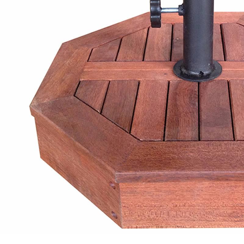 Đế dù có kích thước 50x50x12 cm khung và thân được làm từ gỗ dầu Nam Phi nhập khẩu nên có khả năng chịu mưa nắng tuyệt vời, gia công sắc xảo, đáp ứng các tiêu chuẩn xuất khẩu vào các thị trường khó tính như Nhật Bản, Hàn quốc... Chất gỗ dầy dặn, xử lý trơn nhẵn, khung đổ bê tộng trọng lượng lớn nên an toàn cho người dùng. Thiết kế tháo dỡ tiện lợi, tỷ lệ cân đối, tạo nên kết cấu vô cùng chắc chắn, đảm bảo sử dụng lâu bền. Đế dù là phụ kiện không thể thiếu của các loại dù gỗ 1 hoặc 2 tầng tạo nên 1 sản phẩm hoàn chỉnh, có thể kết hợp với các mẫu bàn ngoài trời để đặt ở ban công hoặc ngoài trời, phù hợp với những buổi cafe sáng hoặc trà chiều thư giãn, ngắm cảnh.