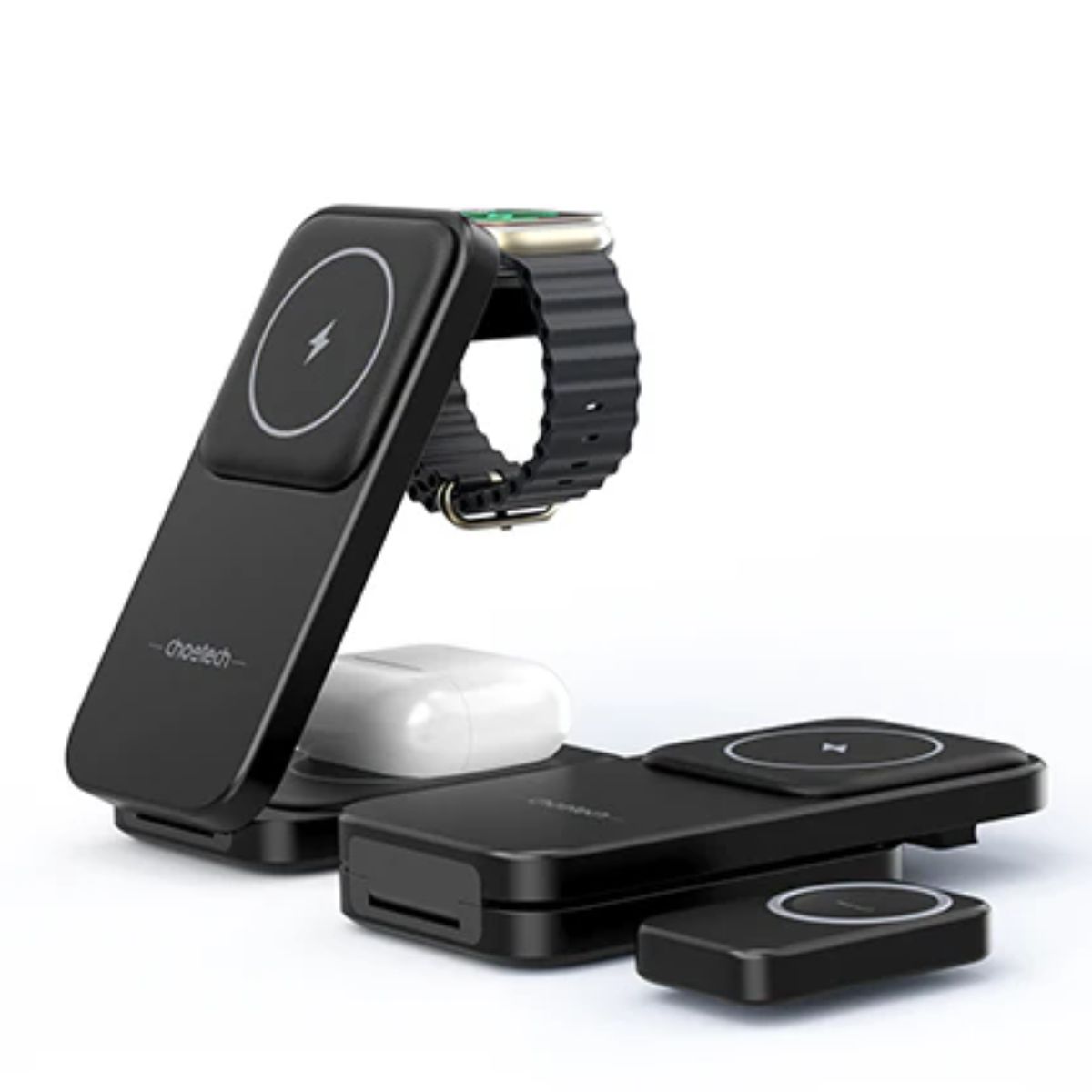 Đế sạc nhanh Magsafe 3 in 1 xếp gọn 15W Choetech T611 dùng sạc cho điện thoại, tai nghe