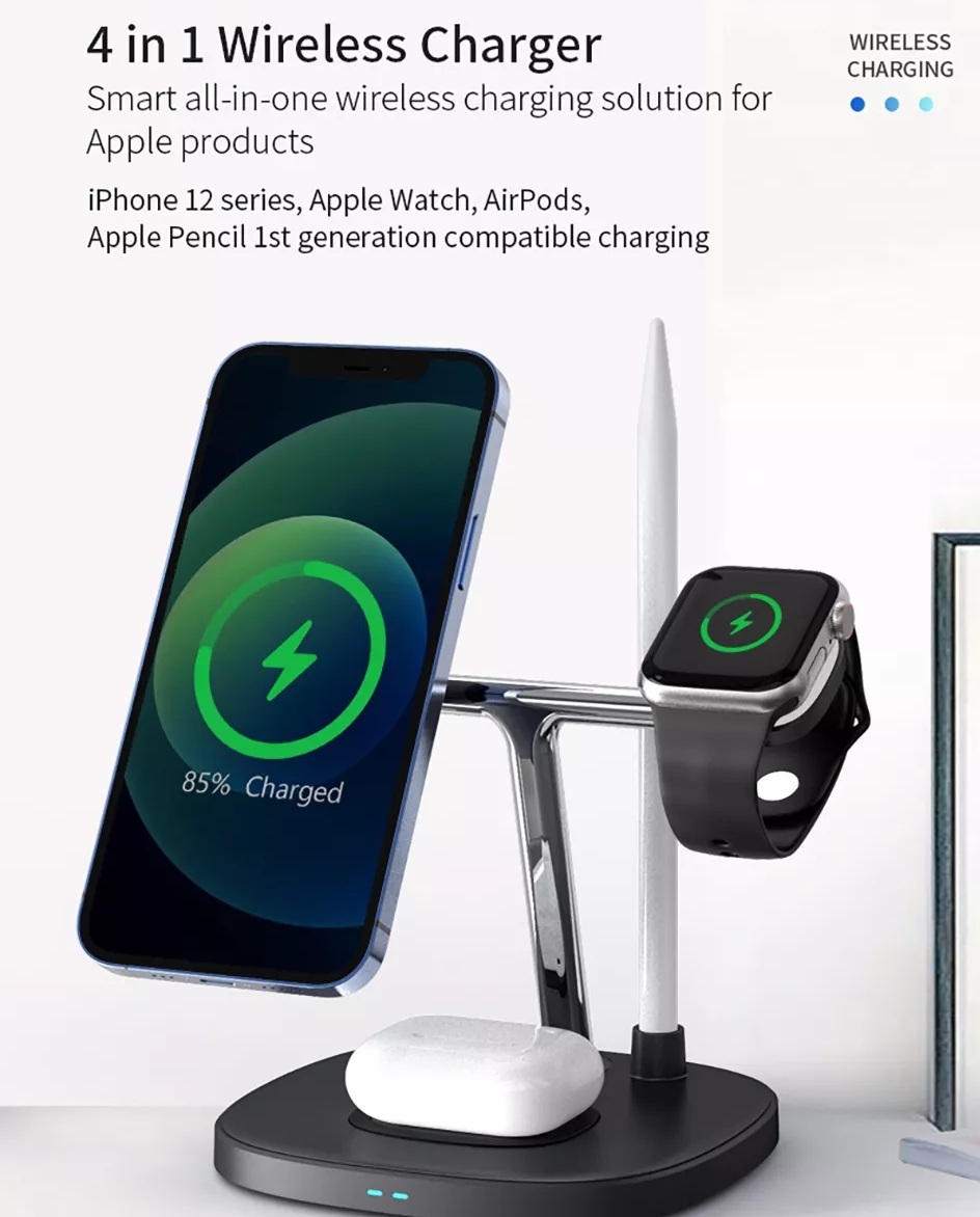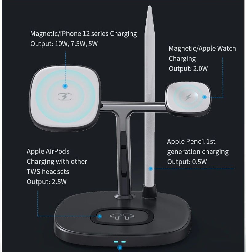 Dock sạc Wiwu Power Air 4in1 cho phép sạc 1 lúc 4 thiết bị Apple