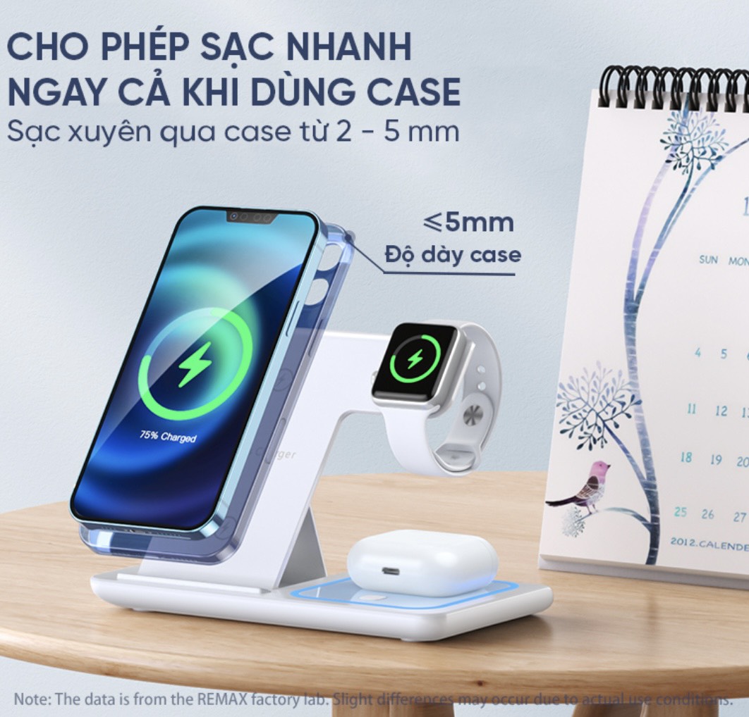Đế sạc không dây 3 in 1 Remax RP-W53 sạc nhanh 15W