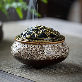 Mua tại TiktokLư trầm chất liệu gốm sứ tráng men sắc xảo, đẹp mắt. Màu sắc: loang màu trắng, xanh rêu, xanh biển, đỏ, vàng, và màu trắng Kích thước: 9.5 x 6.5cm Phần nắp được thiết kế hình hoa sen với nhiều khe hở, dễ dàng đốt trầm và lan toả hương thơm. Công dụng: đặt phòng khách, ban thờ đốt trầm nụ, nhang vòng vừa trang trí đẹp mắt vừa lưu toả hương thơm dễ chịu
