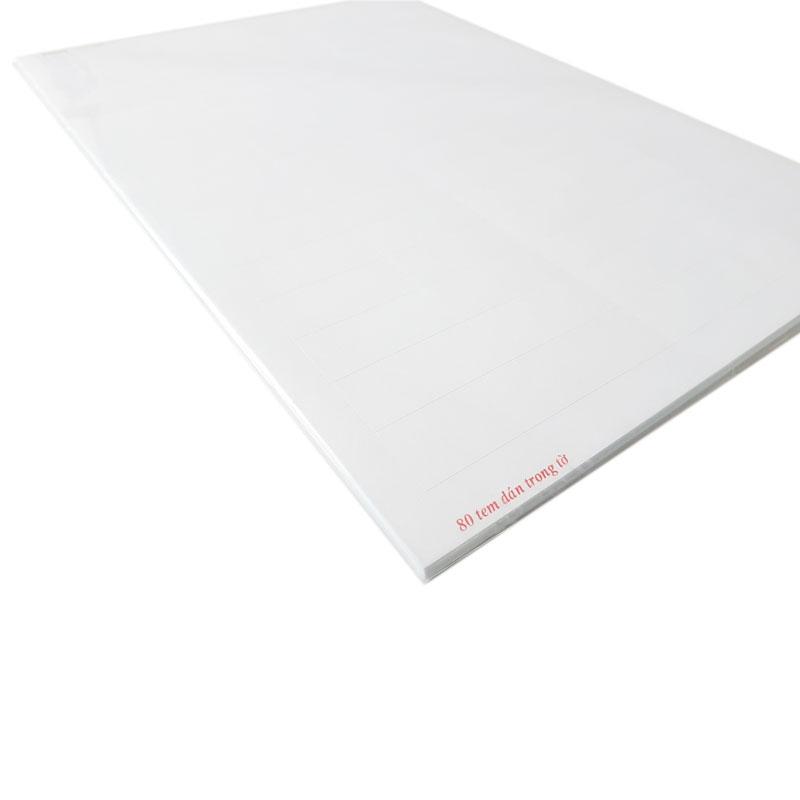 Giấy in mã vạch A4 Tomy 140 có 80 tem bế sẵn trên tờ giấy khổ A4 dùng để in mã vạch tem nhãn, không cần dùng máy in mã vạch mà in bằng máy in laser văn phòng, máy in&photocopy 2in1.