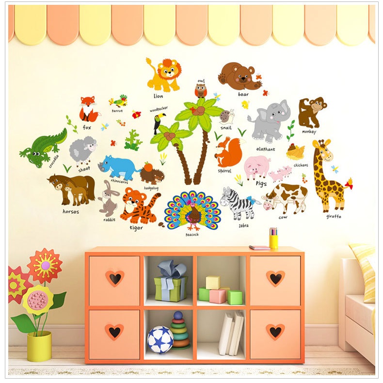 ✨Decal trang dán tường vườn thú tiếng anh 3 AmyShop (68 x 126 cm)