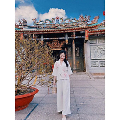 sét bộ đồ nữ quần ống suông rộng phối áo thêu hoa mặc ơ nhà đi chơi duyên dáng mẫu mới siêu hot có bigsize đẹp xuất sắc Màu sắc: y hình Size : M