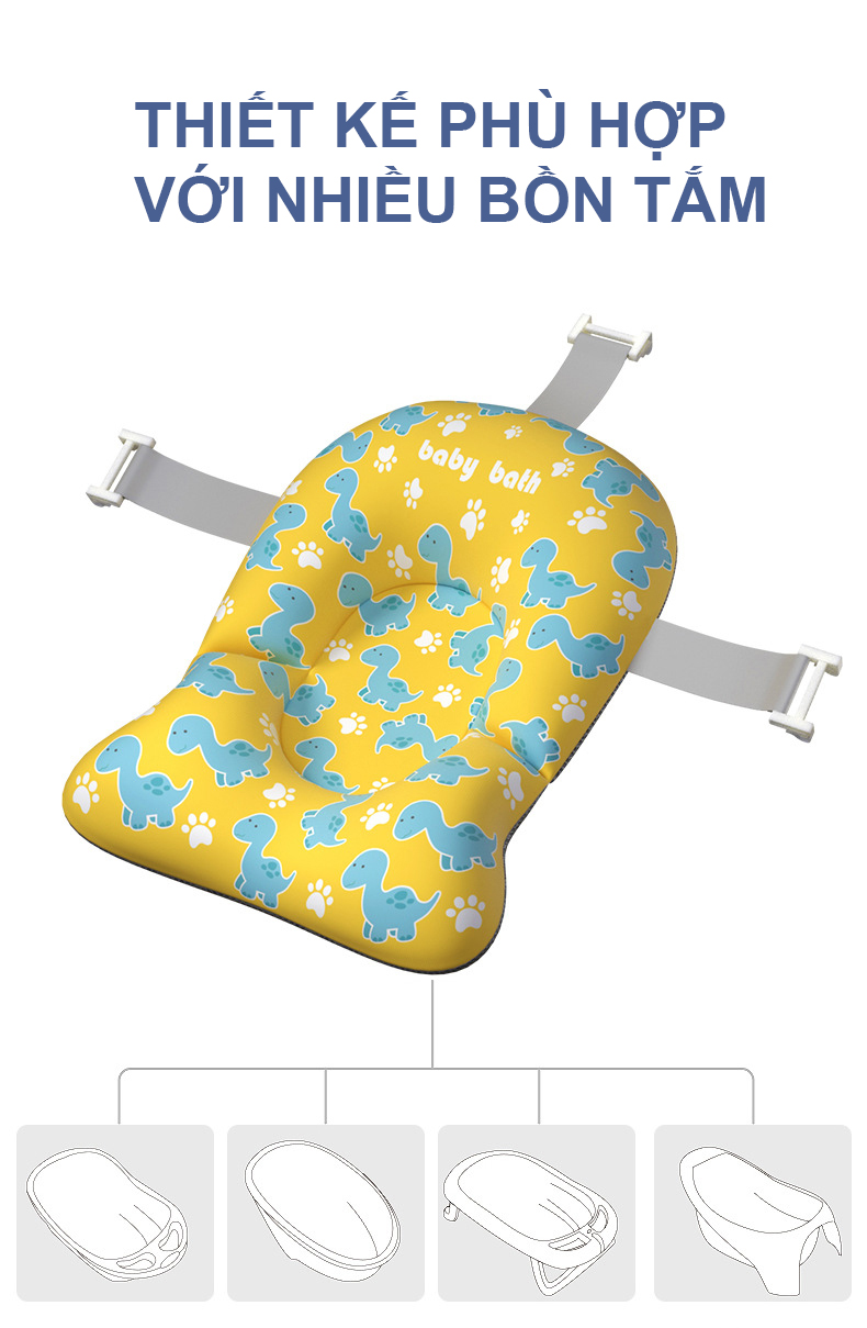 - Chất liệu mềm mại, an toàn - Nâng đỡ hiệu quả cơ thể và thiết kế phù hợp với lưng của bé - Móc hình chữ U giúp cố định vào thau tắm bé