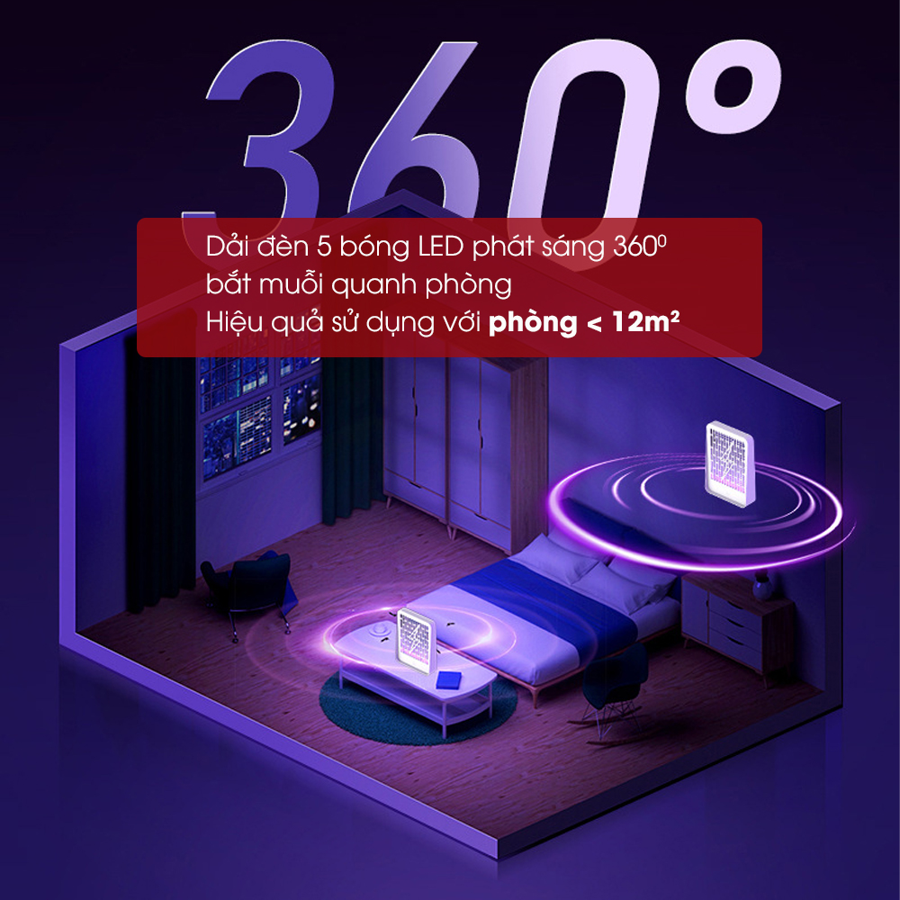 - Bắt muỗi hiệu quả trong phạm vi xung quanh phòng dưới 12m2