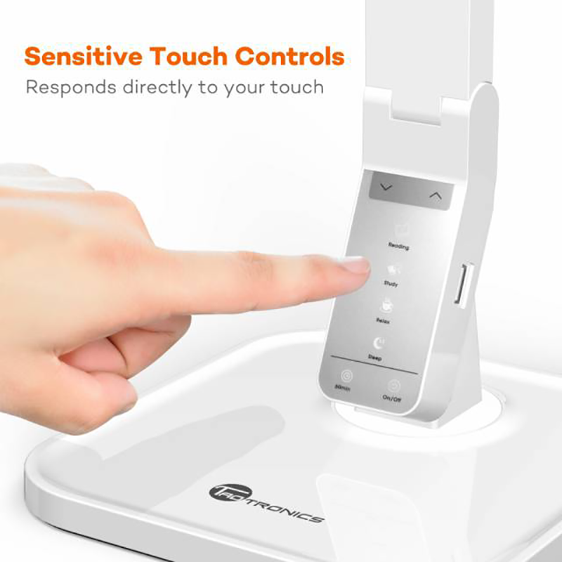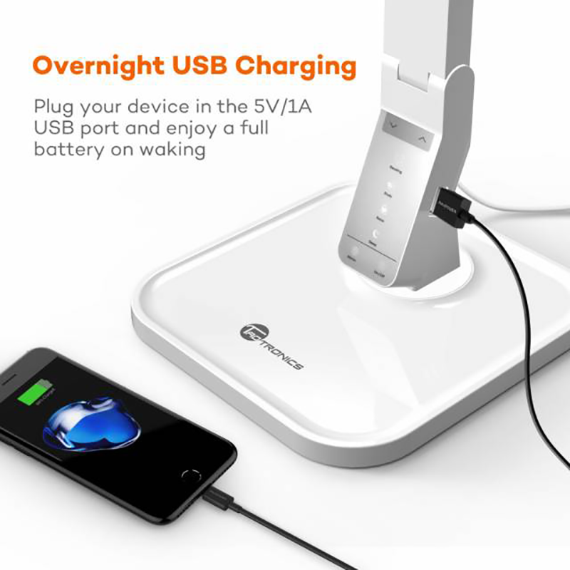 - Chế độ Sleep: Ánh sáng màu vàng nhẹ Đèn bàn linh động điều chỉnh góc chiếu sáng : xoay đế đèn 180 độ, điều chỉnh gập cánh tay đèn 140 độ. Không có vấn đề nơi bạn chọn ngồi, hãy thư giãn khi biết rằng có một chiếc đèn có thể tỏa sáng từ mọi góc độ. Đèn bàn LED TaoTronics TT-DL02 có thể điều chỉnh với cánh tay đèn có thể xoay lên đến 140 ° hoặc xoay đế 180 °đảm bảo bạn luôn có được góc đọc hoàn hảo bất cứ nơi nào bạn ngồi . Không chỉ có tác dụng làm sáng phòng, đèn bàn TaoTronics được tích hợp nhiều tính năng tiện dụng hơn cho bạn. Đèn đặc biệt trang bị đầu ra USB 5V / 1A sạc bằng USB tiện lợi, điều này cho phép bạn sạc dễ dàng, kể cả thông qua các thiết bị di động của m.ình.Tích hợp sạc dễ dàng và nhanh chóng với cổng USB giúp bạn sạc các thiết bị điện thoại, máy tính bảng Ngoài ra, đèn có tích hợp tính năng hẹn giờ tự động tắt sau một giờ giúp bạn tiết kiệm điện hơn nếu bạn thường xuyên ngủ gật trong khi đọc sách, thì chức năng bộ nhớ sẽ tự động khôi phục mức độ sáng và nhiệt độ màu gần nhất mà bạn sử dụng. Đèn bàn LED Taotronics sẽ giúp bạn tiết kiệm đến 75% lượng năng lượng tiêu thụ so với các đèn bàn khác cùng cường độ ánh sáng. Tính năng hẹn giờ tự động tắt sau một giờ giúp tiết kiệm điện nếu bạn thường xuyên ngủ gật trong khi đọc sách và chức năng bộ nhớ sẽ tự động khôi phục mức độ sáng và nhiệt độ màu gần nhất mà bạn sử dụng. Ưu điểm vượt trội: